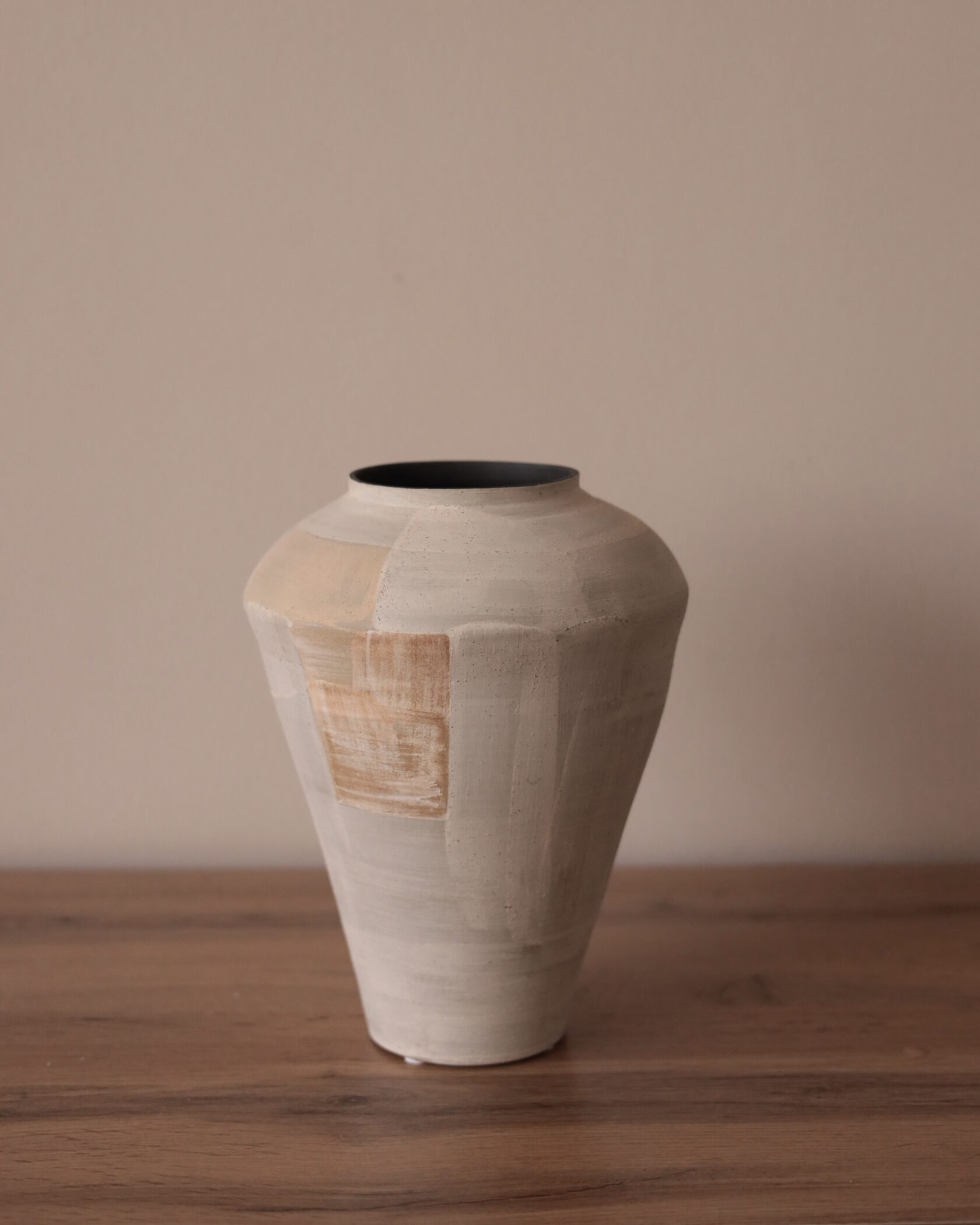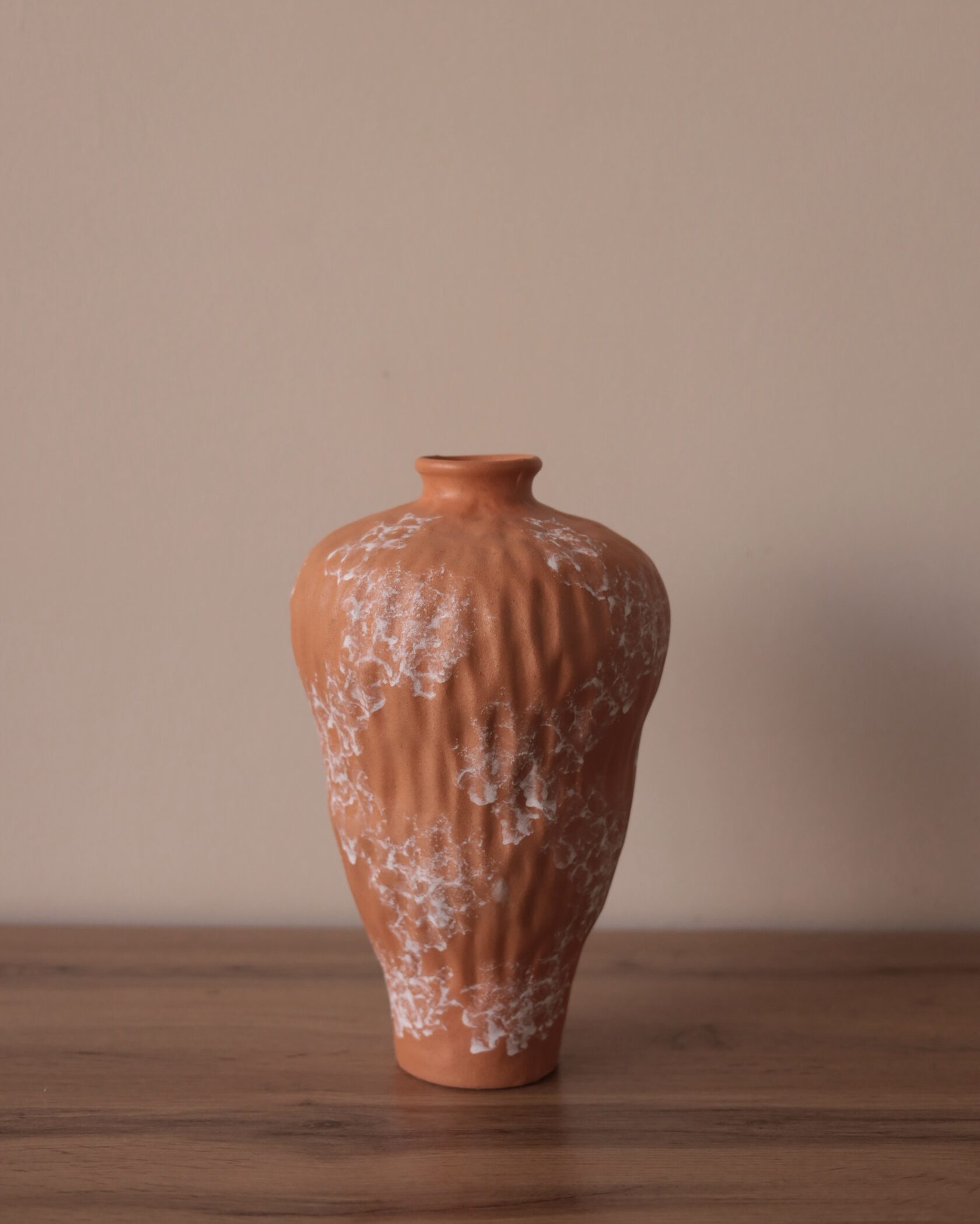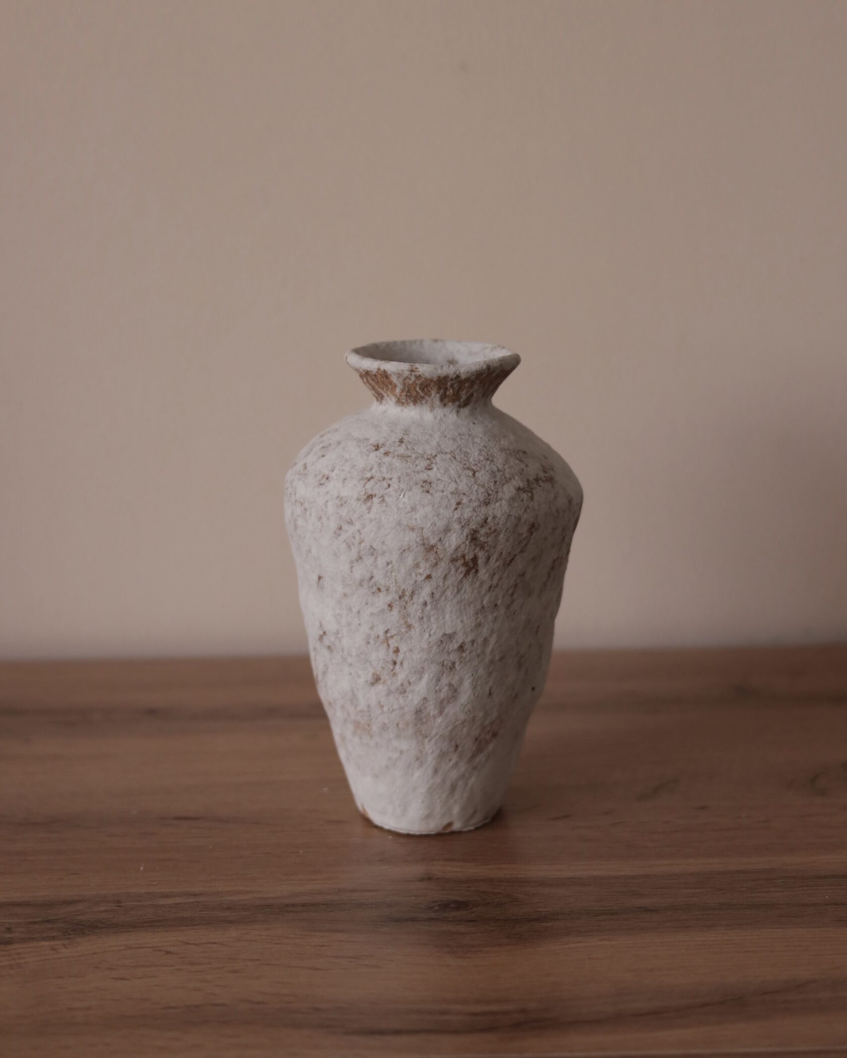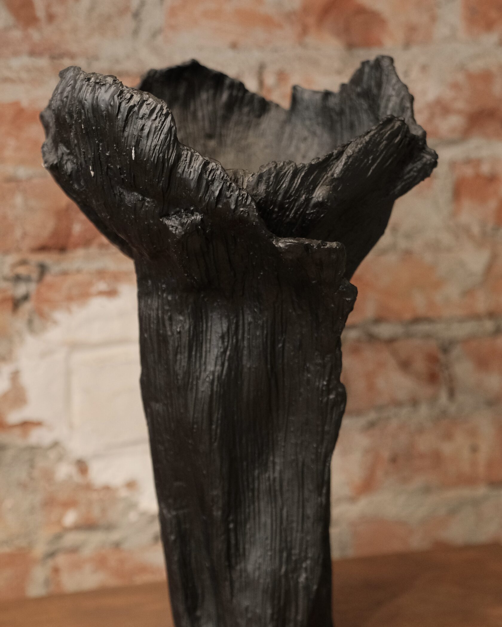 Естественная палитра и фактурная поверхность создают ощущение предмета, рожденного из земли и времени. Эта ваза — не про декор, а про присутствие: спокойное, уверенное, почти медитативное.