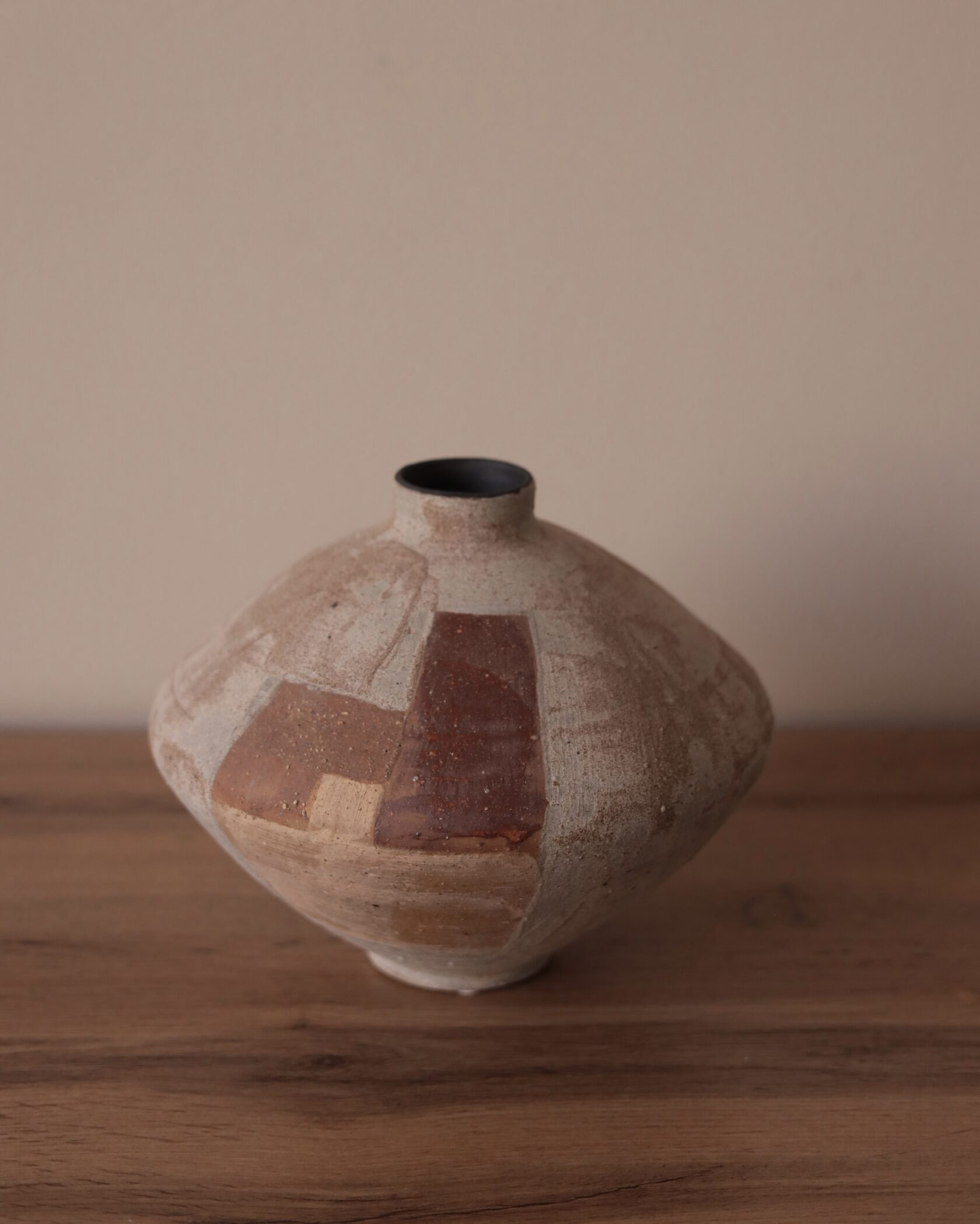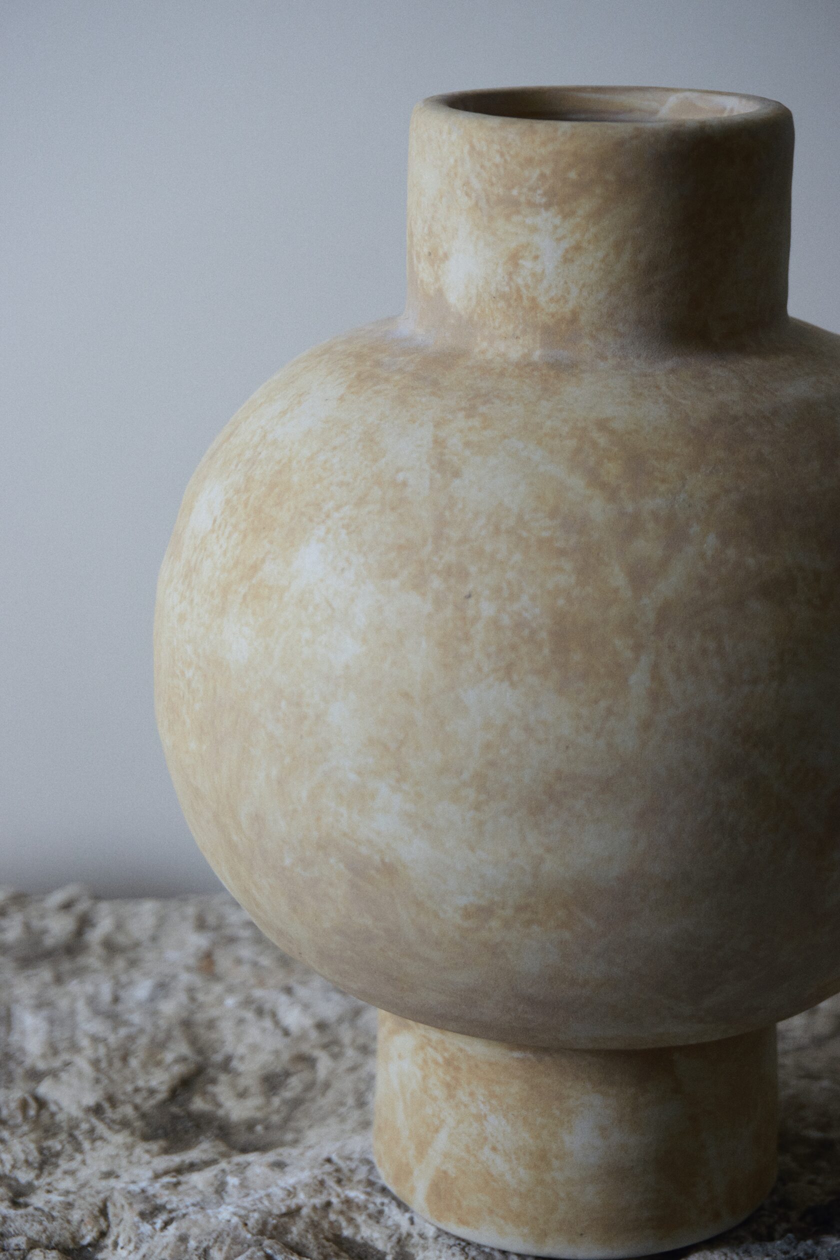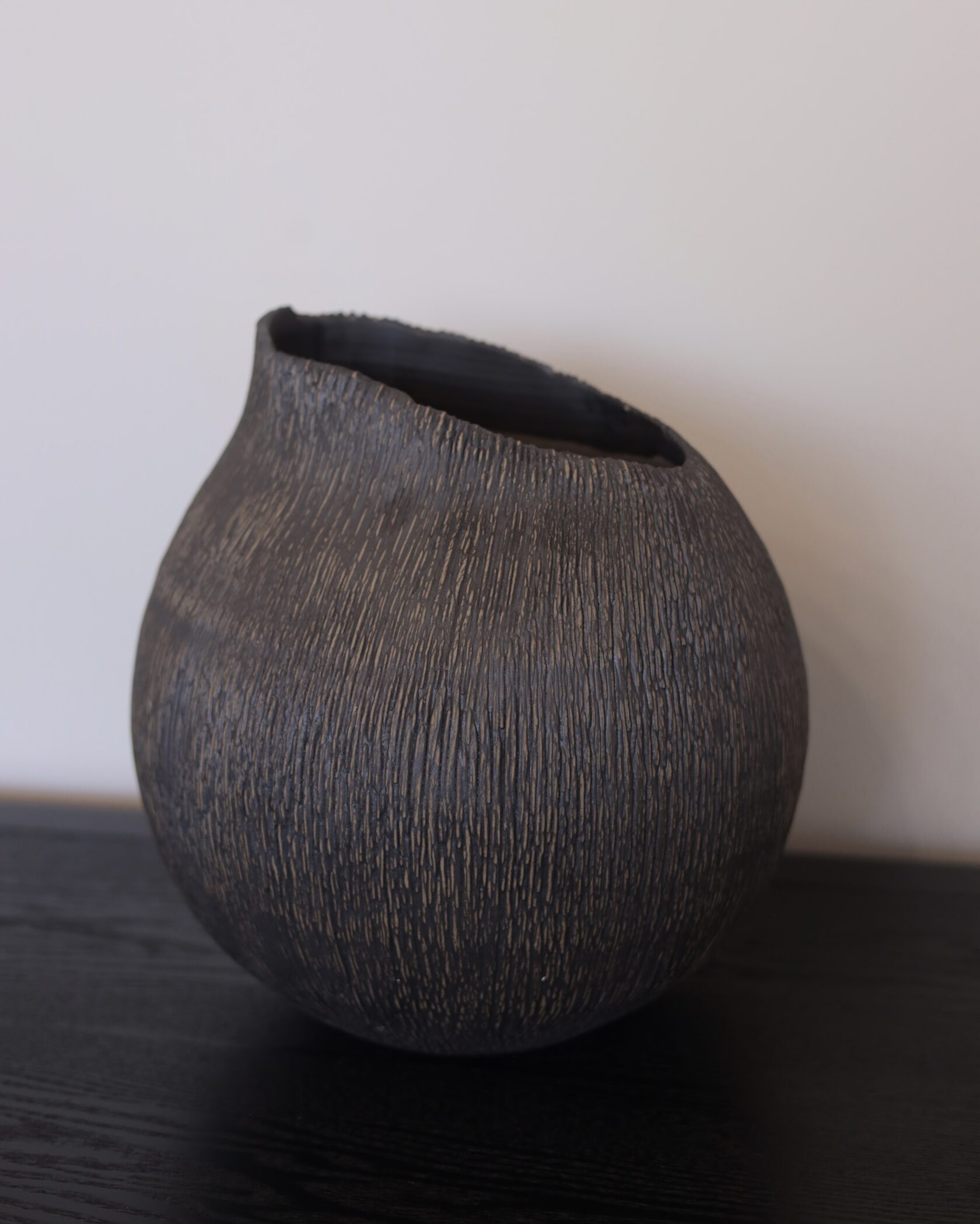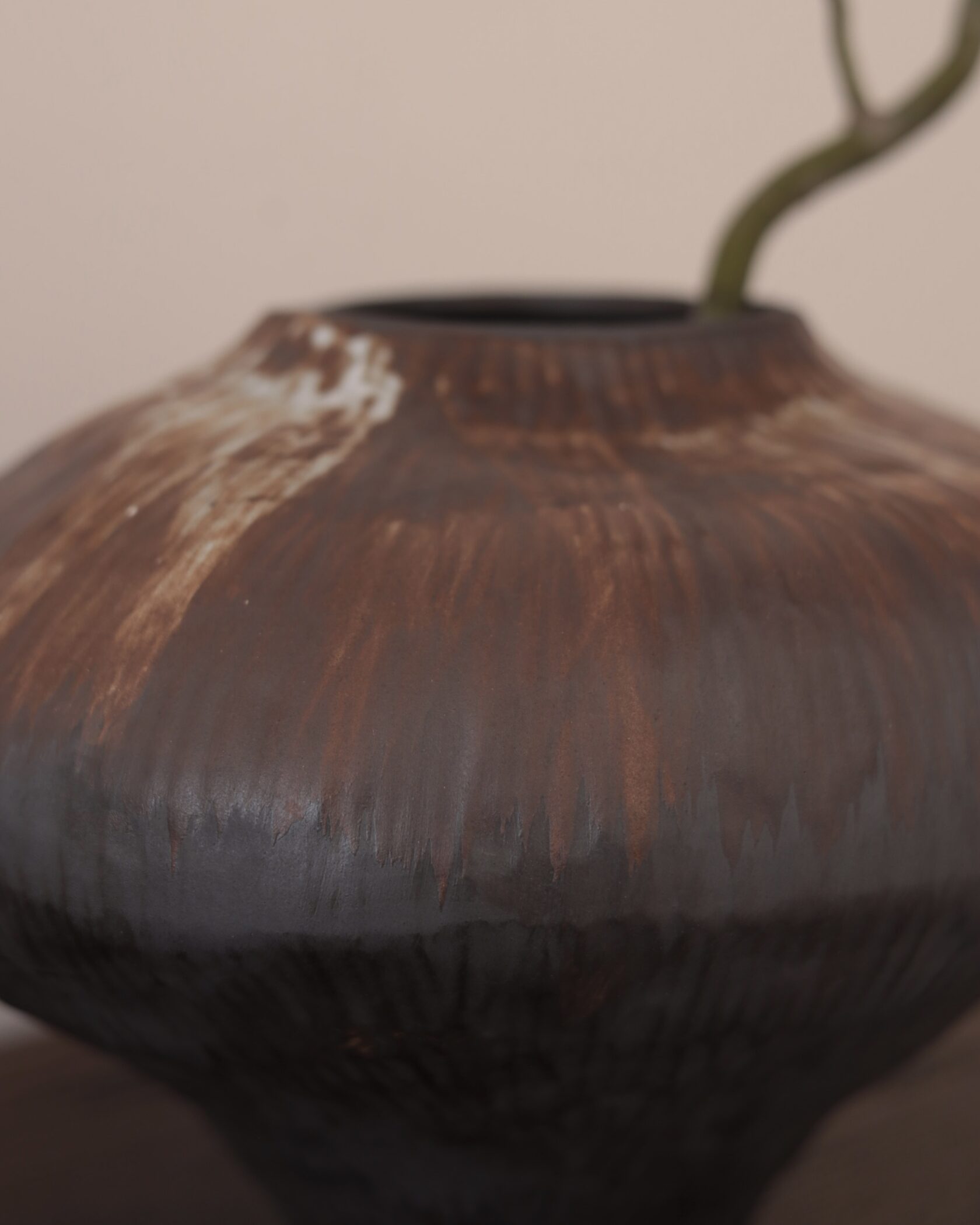 Естественная палитра и фактурная поверхность создают ощущение предмета, рожденного из земли и времени. Эта ваза — не про декор, а про присутствие: спокойное, уверенное, почти медитативное.