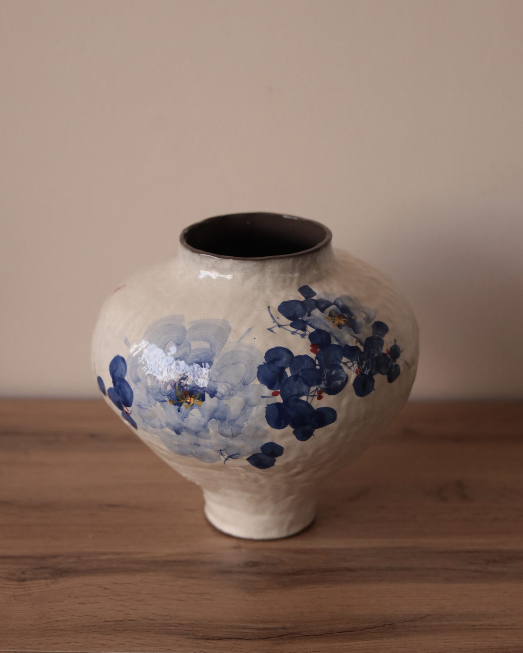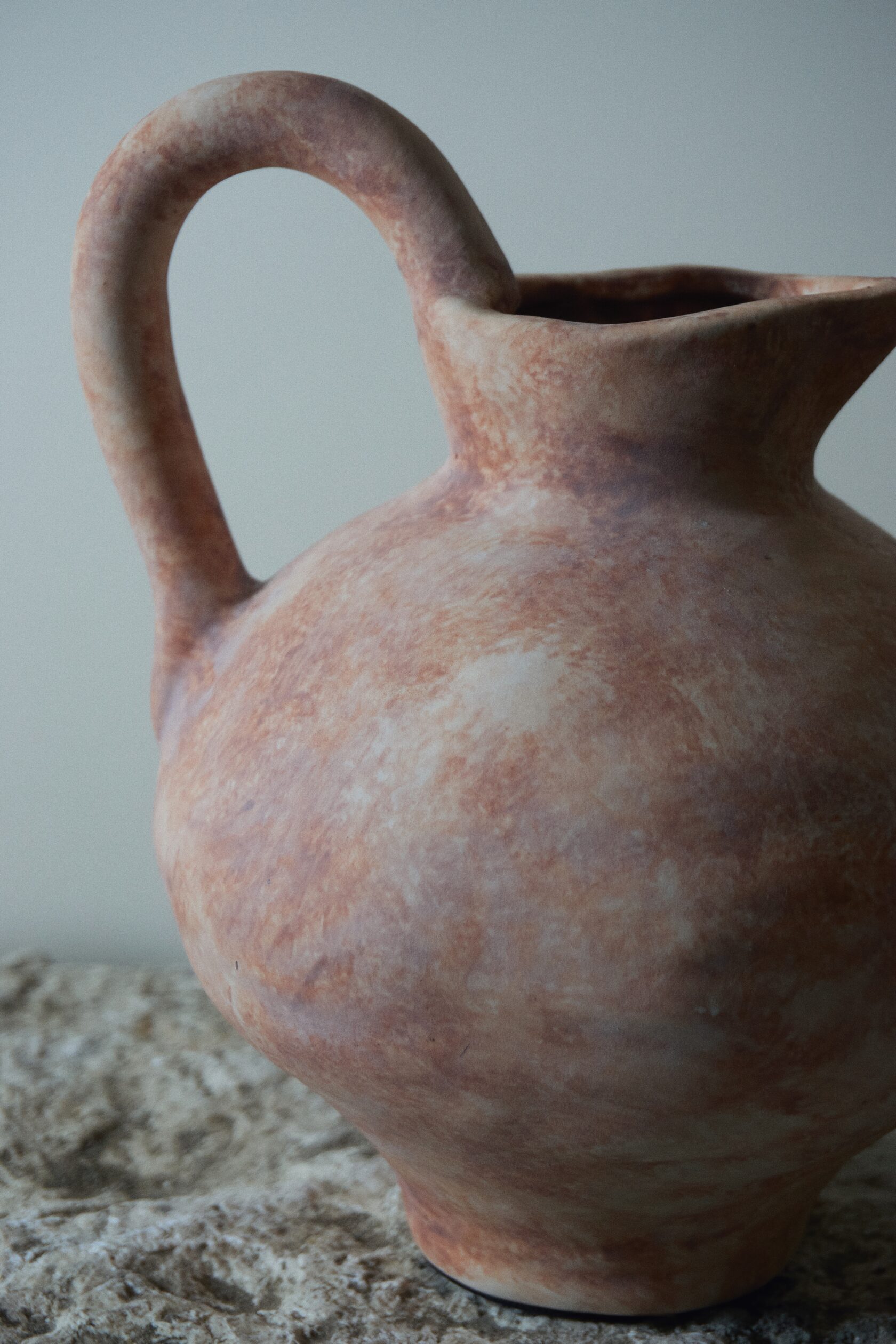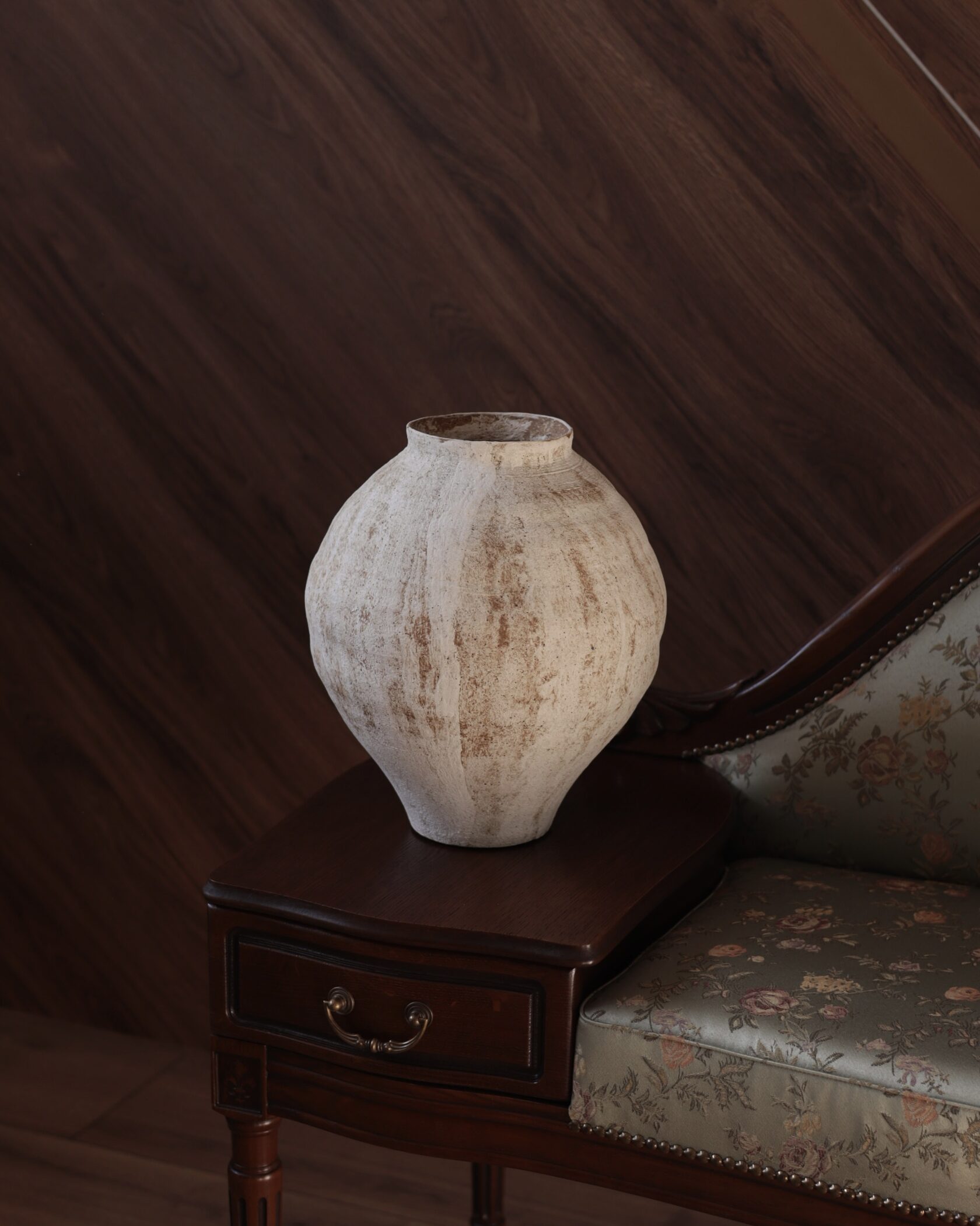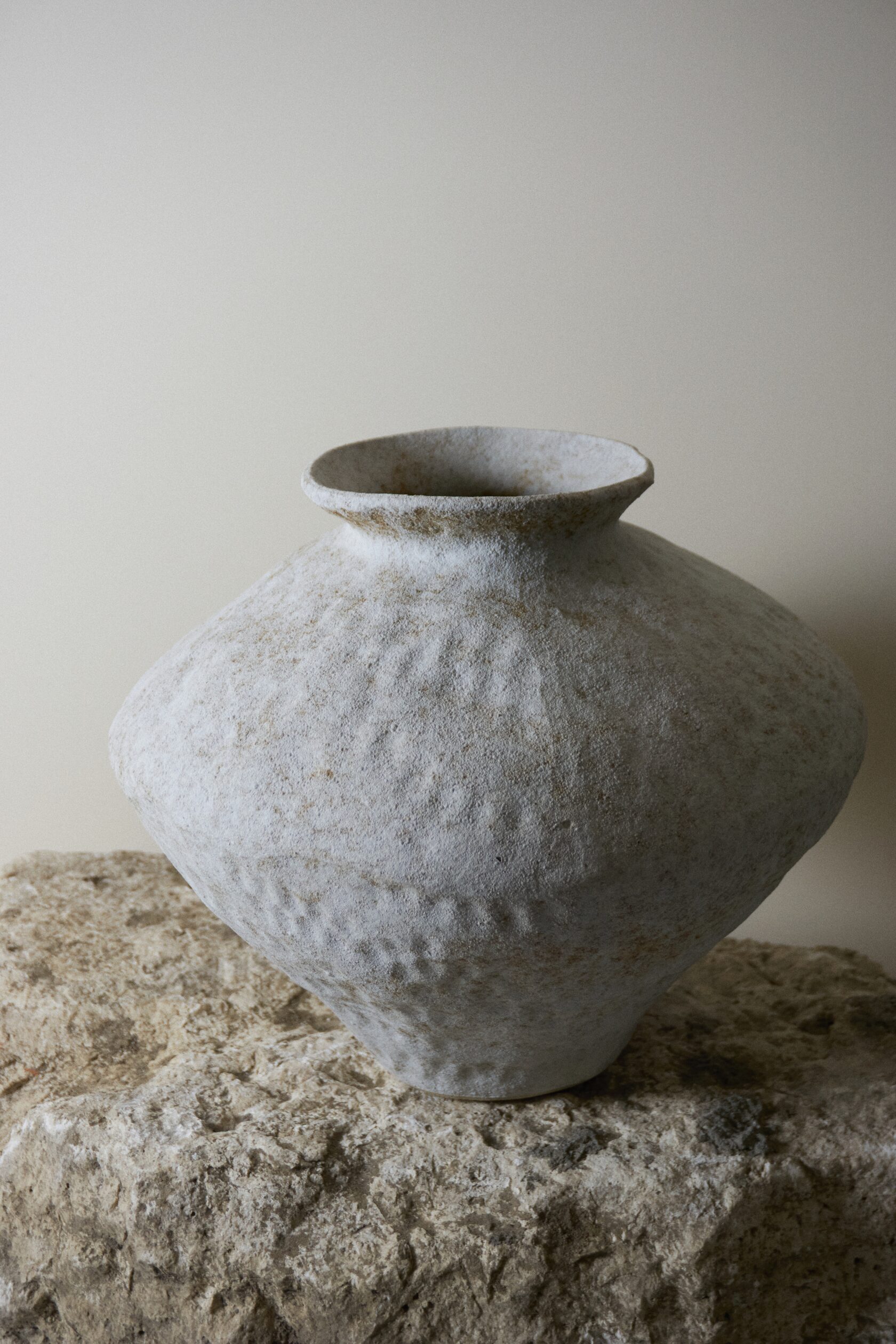 Естественная палитра и фактурная поверхность создают ощущение предмета, рожденного из земли и времени. Эта ваза — не про декор, а про присутствие: спокойное, уверенное, почти медитативное.