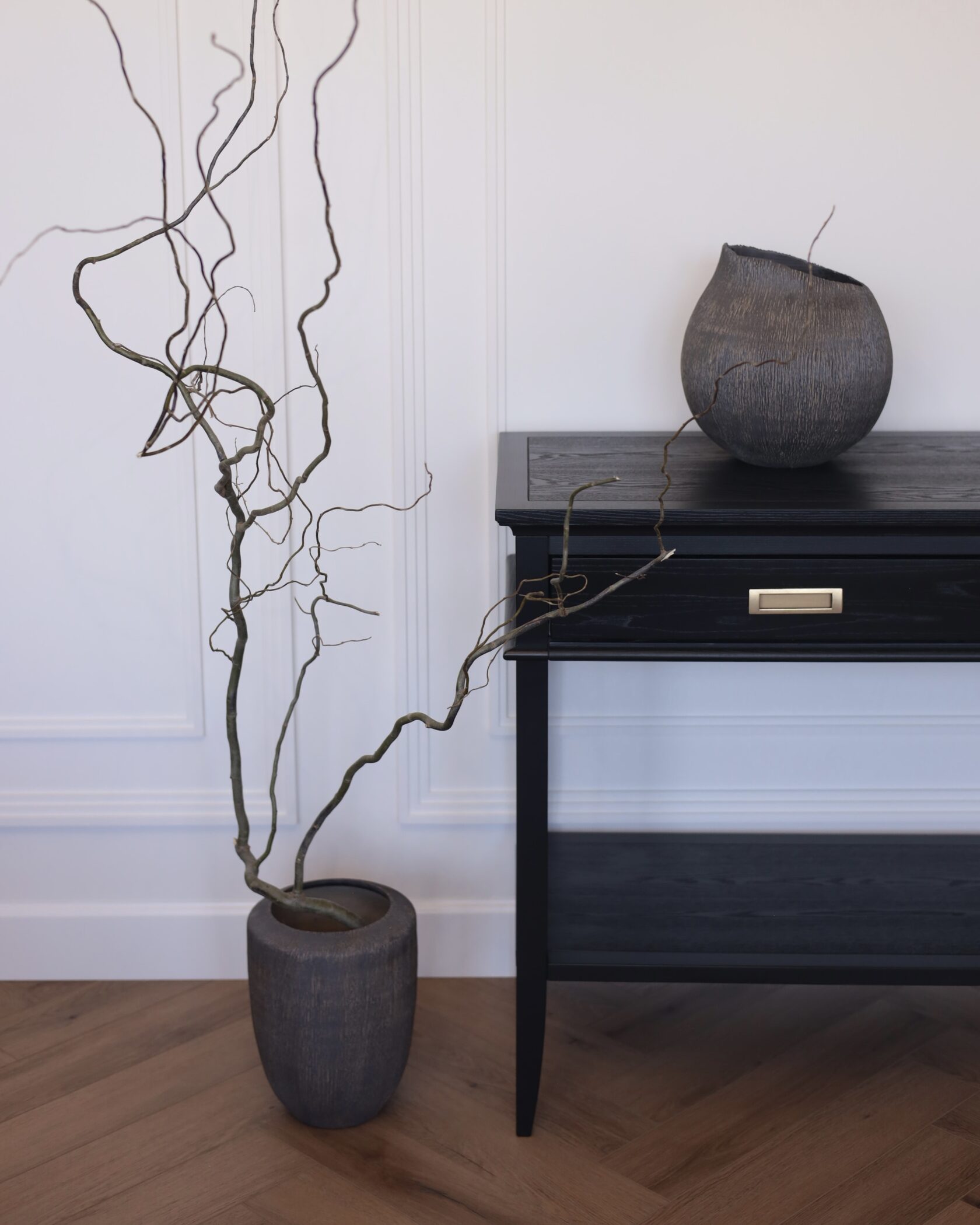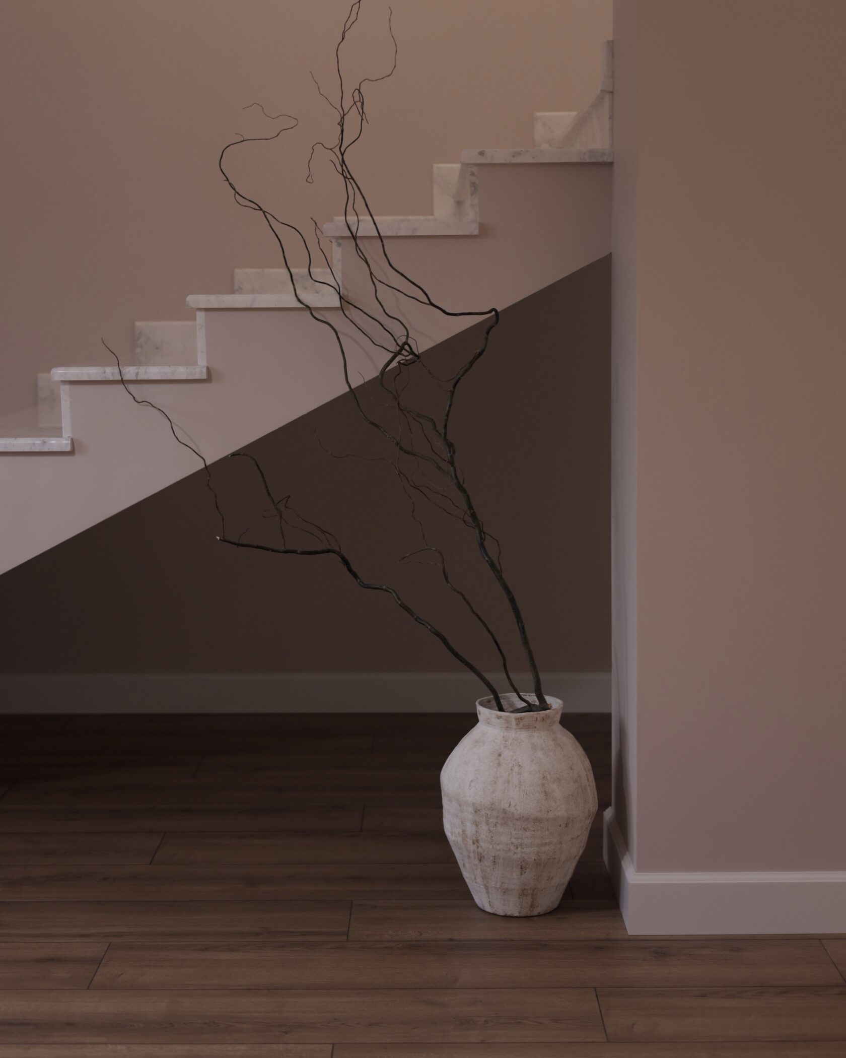 Ваза выстраивает пространство вокруг себя, добавляя интерьеру высоты и структуры. Мягкая, природная палитра уравновешивает строгую вертикаль, делая объект тёплым и тактильным. Идеальна для вытянутых композиций, одиночных ветвей и как самостоятельный интерьерный акцент.