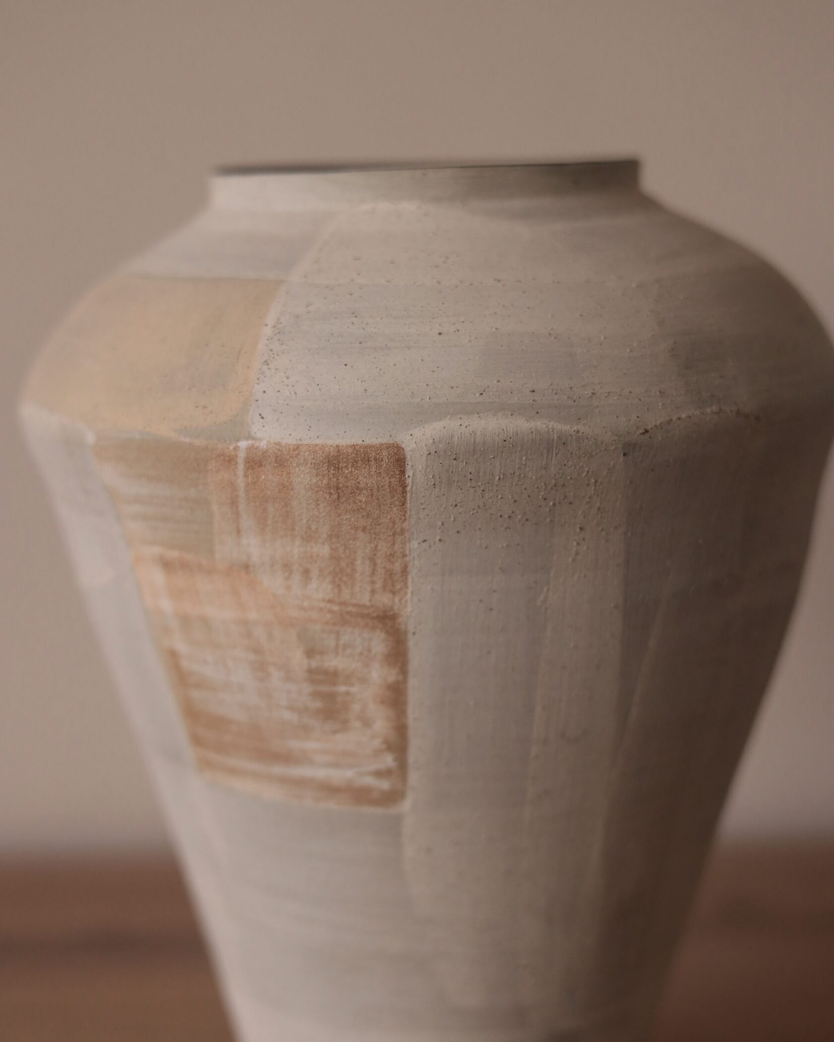 Широкая керамическая ваза с благородной матовой фактурой и естественным оттенком, подчёркивающая чистоту формы и тактильную выразительность материала